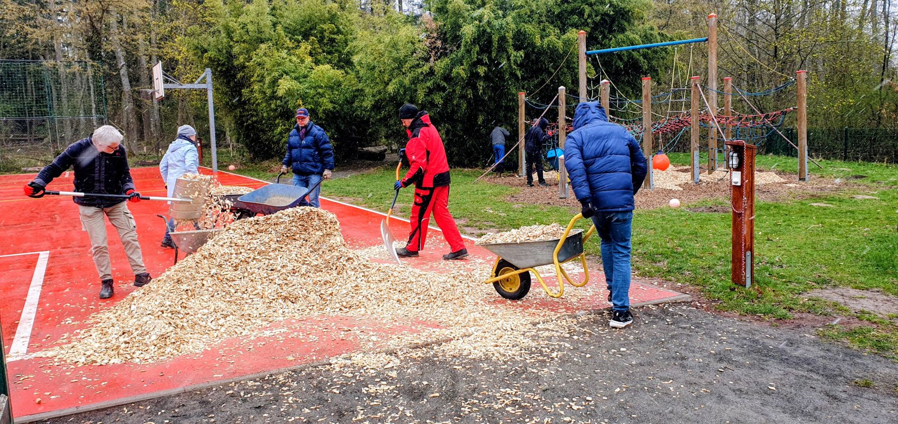 • neue Fallschutzhackschnitzel bei der Seilbahn und Klettergerüst verteilt